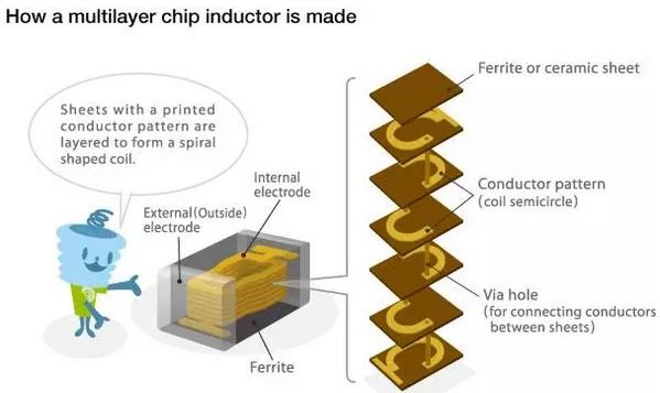 多層片狀電感的制作工藝:將鐵氧體或陶瓷漿料干燥成型,交替印刷導電漿料,較后疊層、燒結成一體化結構(Monolithic)。