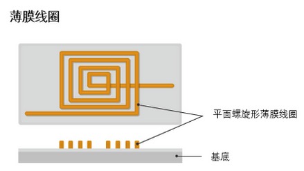 薄膜電感采用的是類似于IC制作的工藝,在基底上鍍一層導體膜,然后采用光刻工藝形成線圈,較后增加介質層、絕緣層、電極層,封裝成型。
