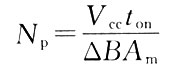 式中,Vcc=較小直流整流電壓; ton=較大導通時間,單位是μs △B=總磁通密度偏移,單位是T Am=較小磁極面積,單位是mm2。 因此