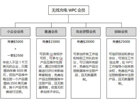 無線充電器聯(lián)盟(簡稱:WPC聯(lián)盟)由多家獨立公司組成的合作組織,qi標準是WPC為可兼容的無線充電器座設(shè)立的國際標準。帶有qi標志的手機、相機、遙控器及所有電子產(chǎn)品將與印有標志的所有充電器座兼容。![]() qi標識 在目前商用的手機無線充電器領(lǐng)域,WPC聯(lián)盟的qi標準占據(jù)絕對優(yōu)勢,截止到8月份全球已經(jīng)有628家公司加入了qi會員,包括蘋果、三星、LG、haier等國際知名企業(yè)。 WPC會員 “qi”標識是屬于WPC聯(lián)盟,在無線復(fù)讀機電源適配器充電器產(chǎn)品上使用這個標識,首先需要得到WPC的授權(quán),在未經(jīng)授權(quán)的情況下使用,屬于侵權(quán)會受到WPC的懲罰或面臨產(chǎn)品下架。另外,無線充電器產(chǎn)品經(jīng)過qi認證之后,各項指標符合qi標準要求,也是產(chǎn)品本身質(zhì)量的保證,消費者使用通過qi認證的產(chǎn)品明顯要比未通過的更加安全可靠。 一款產(chǎn)品要申請qi認證,首先需要公司注冊成為WPC會員,繳納會員費,會員有小企業(yè)會員、普通會員、完全資格會員和創(chuàng)始會員,不同的會員繳納的會員費不同,獲得的權(quán)利也不同。