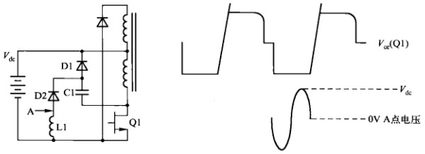 | 對于工作頻率超過50kHz的電源適配器,傳統電源適配器RCD緩沖電路的損耗通常為10W或者更高。這一附加損耗帶來的問題不僅僅是損耗電源適配器本身,還有電源適配器緩沖電阻的大小和所占的位置。實際應用中,選擇功率電阻的功率降額系數為1/2。這樣,10W的電源適配器損耗需要一個20W的電源適配器功率電阻。 20W的電源適配器功率電阻體型較大,通常其位置的選擇是比較困難的。而且10W的電源適配器損耗使它的溫升會影響周邊元件,這就更難為它選擇一個合適的位置了。 圖中給出了一種“無損緩沖電路”。雖然它的結構比較復雜,但是為以上問題提供了一個比較好的解決方法。與傳統的RCD緩沖器一樣,電源適配器是通過使用電容減緩晶體管集電極電壓上升速度來達到緩沖目的的。但是它不會通過電阻將電容的電能釋放掉,這樣就避免了能量損耗。 無損緩沖器將電容C1儲存的靜電能轉化為電流流過電感時產生的電磁能。在下一開關周期開始之前,電源適配器電容和電感通過諧振的形式使電容放電,并將儲存的能量回饋到輸入直流母線。因此,整個過程沒有任何能量損失一首先能量儲存到緩沖電容上,然后無損地回饋到輸入母線上。 如圖所示,當Q1關斷時,其集電極電壓開始上升,D1導通。C1的緩慢充電減緩了集電極電壓的上升速度。C1下端電壓上升到2V,C1上端電壓被D1鉗位為V,因此電流從變壓器的下端向C1和D流動,從而減級了Q上電壓的變化速度。電容上儲存的能量為0.5C1(Vdc)2。 ![]() 電源適配器無損緩沖電路。電容C1減緩了Q1集電極電壓的上升速度,當Q1導通時,前半個振蕩周期內儲存在C1的能量轉換為以電感電流形式存在的磁場能量。在后半個振蕩周期,A點電壓變為正,電感將儲能無損地回饋給V當Q1再次開通時,C1下端的電位從2V被拉到地,由于電容兩端電壓不能突變,C1上端的電位變為-V4。這一負壓會加在串聯的L和D2上,使得電容的放電電流可經由D2,從L的下端流向上端。這一過程中產生的振蕩頻率為f=12m√LIC1。在半個振蕩周期后,以電壓形式儲存在電容C1上的靜電能,轉變為以電流形式儲存在電感L1中的電磁能。此時,L1的電流達到其較大值。在下半個振蕩周期,L上端的電壓因諧振升高一倍,使得D1導通,L1中的電流通過D返回輸入母線。如果L是高Q值的電感,則在前半個振蕩周期中儲存的能量將全部在后半個周期返回輸入V。 首先,要選擇足夠大的C1,以保證Q1集電極電壓上升時間滿足需求。然后,電感的選擇應使振蕩周期小于Q1較小導通時間。 負載線整形(減少尖峰電壓以防止晶體管二次擊穿的緩沖器) 除了能夠減緩晶體管電壓的上升速度,緩沖器另一個很重要的優點是減小了晶體管的平均損耗,防止了二次擊穿。當瞬態電壓、電流超出基極反向偏置安全工作區( RBSOA),將會發生二次擊穿。 RBSOA的數據在晶體管的用戶使用手冊中給出。 ![]() 15A,450V快速晶體管2N6836的反向偏置安全工作區( RESOA)。晶體管關斷時變壓器漏感會在一定時間內維持電流(由A到B的漏感尖峰)。如果沒有基極反向電壓偏置,品體管將超出安全工作區,發生二次擊穿而被損壞。RCD緩沖器可以減小開關重疊損耗,同時也可以減小漏感尖峰的幅值。 在晶體管關斷的瞬間,漏感尖峰可能會超出該安全邊界(圖)。晶體管制造商聲稱,僅一次超出邊界都可能引起二次擊穿,造成元件失效。 不借助計算機是不可能對關斷瞬間集電極電壓變化的順序和大小進行確切分析的,但通過下面的近似討論,可以知道問題的嚴重性,和怎樣通過緩沖電容來減小漏感尖峰。 當Q1關斷時,變壓器的漏感可以保持通過Q1的電流短時間內不變。根據上面的假設,近似認為一半的電流是流過正在緩慢關斷的品體管,另一半則流入了緩沖器電容Cl。 在圖中,當Q1關斷時,勵磁電感上的電壓反向,并使得復位繞組N2上的電壓反向。的上端電壓立刻變負,并被D4鉗位到地。因為繞組匝數N,=N,所以L、上的電壓被鉗位到V,A點的電壓升高到21前半個周期的振蕩,即漏感尖峰,疊加在數值為2V的A點電壓上?!蹋疌I為LC電路的特征阻抗,因而增大C1可以使集電極電壓的上升時間變長,同時也可以減小漏感尖峰。 尖峰電流的一半12會流經漏感L、緩沖電容C1和二極管D1,這將引起正弦振蕩,振蕩周期為2m√C1。前半個周期的振幅近似為 基于上述研究,計算漏感尖峰的幅值是非常有意義的。對于在前面充電器廠家:玖琪電源所舉的例子中的100kH變壓器,其感大的為15H則LC電路的特征阻抗為