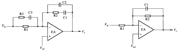 | 電源適配器輸入網壓的調整 下面電源適配器廠家玖琪跟大家討論電源適配器的芯片如何對輸入網壓的變化進行調整。假設電源適配器輸入網壓上升(V隨之上升),V上升時,次級繞組峰值電壓上升,經過L輸出的V也上升。由于次級直流輸出電壓與次級繞組峰值電壓和晶體管導通時間成比例,次級峰值電壓上升就要求晶體管導通時間下降才能保持直流輸出電壓不變。上升的V,經誤差放大器(一段時間延時后)使V下降,從而在PwM比較器中電流采樣電壓V和下降后的V。電壓等值點較低(即交點提前),并使導通時間縮短,輸出電壓V被拉低而保持恒定。 然而,若這僅是針對輸入電壓調整的機理,則由于要經L和誤差放大器的延時,響應速度就會較慢。但實際上電流模式可避開這些延時。即當V上升時,加到輸出電感的輸入端的峰值電壓V增大,電感電流斜率dd及V的斜率也增加。這樣V的斜坡峰值將更快達到V,導通時間不需要V的調節延時而立即縮減。由于這種電壓前饋特性,輸入網壓瞬態變化所引起的輸出電壓的瞬態變化的幅值和持續時間都將顯著減小。 防止12V2A電源適配器偏磁 如圖中的V波形所示,它取自電流采樣電阻,其值與晶體管電流成正比。當V峰值與誤差放大器輸出V相等時,導通時間結束。由圖可見,一個周期內兩個交替的半周期峰值電流不會像圖所示的那樣不等,這是因為誤差放大器輸出電壓V波形基本是水平的直線,并且因其帶寬限制,在一個周期內不可能有較大改變。 當變壓器磁心偏離平衡區域,開始趨于向某一方向飽和時,電壓V上升將呈上凹形狀,并且很快達到V,使導通時間較早結束。此時在此半個周期的磁通增長也被中止。而在接下來的半個周期內,由于另一個開關管導通時間并未減少,所以磁心磁通恢復而不致飽和。圖5。3中斜坡電壓V,的峰值是相等的,說明兩個半周期的峰值電流相等。因此圖所示的交替電流不等造成的偏磁現象不會存在。 在小信號分析中可省去輸出電感簡化反饋環設計 參考圖。在小信號分析中,要確定環路是否穩定,首先要假設環路在某一點斷開,再在此斷開處加入頻率變化的正弦小信號。然后,計算從正弦小信號加入處到此斷開點的另外端的整個環路的增益和相移與頻率的關系。根據環路中的其他元器件(主要是LC輸出濾波器)合理地設計誤差放大器的增益和相移,就可以保證閉環穩定。 通常假定頻率變化的正弦信號從誤差放大器的輸入端接入。在第12章“環路穩定性分析”中,將詳細介紹如何計算和設計誤差放大器的增益和相移以達到預期效果。 在圖中,從誤差放大器的輸出到LC濾波器的輸人的正弦信號的增益和相移的表達形式并非一望而知。關鍵是要注意到環路能有效響應的較高頻率小于變換器的開關頻率。因此誤差放大器的輸出V緩慢變化或基本為直流電壓,當它與斜坡脈沖V峰值相等時,Q上將產生一系列寬度與V相關的負脈沖。而Q,負脈沖將對應產生加于LC濾波器輸入端的系列正脈沖。 在這種將電平轉化為一定頻率的系列脈沖的系統中,正弦信號的增益和相移是很難解釋的,不過也可以作如下分析。 如果在誤差放大器的輸人端輸人正弦信號,其輸出端就會出現一定相移的放大信號直流輸出電壓V的幅值及負脈沖Q的寬度同樣會受到該頻率正弦信號的調制。輸出整流器的正向脈沖寬度也受到調制。充電器定做廠家若對與脈寬成正比的整流器陰極電壓在比開關周期長的一個時段內取平均值,則它的幅值被與誤差放大器輸人端接人的正弦信號相同的頻率進行調制。 只要調制周期大于開關周期,這種調制方式屬于正弦波一脈寬一正弦波變換器的調制方式。該調制方式下的增益問題將在“反饋環路穩定性”一章中詳細介紹。 這樣,在圖所示的變換器中,只剩下計算不同頻率的正弦信號通過LC濾波器時的增益和相移問題。若在整流器的陰極得到的是正弦波電壓信號,則其經LC濾波器的相移在振頻率1/2-√C的條件下為90°,而在稍大于該頻率時為180°,其輸入到輸出的增益衰減為-40dB/十倍頻。 但對于電流模式,PWM比較器迫使整流器的輸出電壓跟隨調制的恒流脈沖而非電壓脈沖變化。所以,在LC濾波器的輸人端,其平均波形是恒流而非恒壓的正弦波。 由于是恒流的正弦波,濾波電感將不會產生相移。在小信號分析中,這種電路可以忽略電感的存在。因此,在整流器的輸出端,增益和相移是由流入并聯的輸出電容和負載電阻的恒流正弦波確定的。這樣,電路較多只有90°的相移和-20B/十倍頻而非-40B/十倍頻的增益衰減。 從電源適配器反饋環路穩定性分析中,我們將會看到上述特性會極大簡化誤差放大器的設計,誤差放大器帶寬更寬,且環路對負載電流和輸入網壓的階躍響應性能更好。圖所示分別為電源適配器電壓模式和電流模式電路中誤差放大器反饋網絡的比較。 ![]()