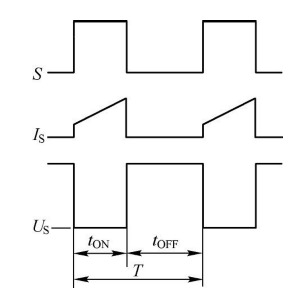 | 在AC-DC電源適配器轉換中,市電均經(jīng)整流變?yōu)楦邏褐绷鳎―C),再經(jīng)DC-DC轉換成負載所需的低壓直流(DC),因此DC-DC轉換器是電源適配器的組成核心,故DC-DC電源適配器也稱為DC-DC轉換器(注:因DC-DC電源適配器的調整管工作在通(ON)與斷(OFF)狀態(tài),故也稱為開關管;又因調整管的主要功能是進行功率轉換,故也稱為功率管或功率開關管)。 電源適配器工作原理的實質是通過改變電路中調整管的導通時間來改變輸出電壓(或電流)的大小,以達到維持輸出電壓(或電流)穩(wěn)定的目的。 DC-DC轉換器就是重復通/斷開關,把直流電壓(電流)轉換成高頻方波電壓(電流),再經(jīng)整流平滑變?yōu)橹绷麟妷海娏鳎┹敵觥C-DC轉換器由半導體開關、整流二極管、平滑濾波電抗器和電容等基本元件組成。當輸入、輸出間需要進行電氣隔離時,可以采用變壓器,把高頻方波電壓(電流)通過變壓器傳送到輸出側。構成DC-DC轉換器的基本元器件如圖1-3所示。圖中,UI為整流后不穩(wěn)定的直流電壓;UO為經(jīng)過斬波的輸出電壓;S為開關。 ![]() 圖DC-DC轉換器構成的基本元器件 通過提高開關頻率,濾波電感、開關變壓器等磁性器件,以及濾波電容等都可以小型輕量化。對于DC-DC轉換器,加在開關S兩端電壓US的波形近似為方波,而通過電流IS的波形近似為三角波或有臺階的三角波,如圖所示。其占空比定義