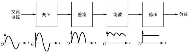 濾波——將整流所得的脈動直流電(大小發生規律性變化)中的交流成分濾除。常用的濾波電路有電容濾波電路、電感濾波電路及阻容濾波電路等。