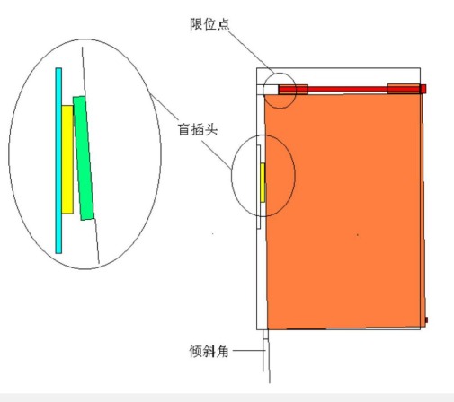 那為什么會出現測試結果不穩定的現象呢?經過分析,我們發現,原來模塊安裝上部的大螺釘是有限位點控制的,如下圖所示,由于限位點的控制,使得模塊在上部擰得很緊得時候模塊以限位點為軸被撐起來,而實際上由于我們擰上部螺釘的套筒工具是帶彎角的大力矩工具,很容易將上部大螺釘擰得很緊,這樣以來,模塊以限位點被撐起來后,下面的小螺釘擰起來就很費勁了,而擰下面螺釘正好是個力矩很小的套筒,只是一個類似螺絲刀的手柄,因此,我們無法使勁將螺釘模塊下部壓得很緊(我們實際上感覺到很緊,只是由于模塊以限位點為軸被撐起來而感到很緊,并非模塊和盲插頭導電膠條接觸很緊而受的力)。