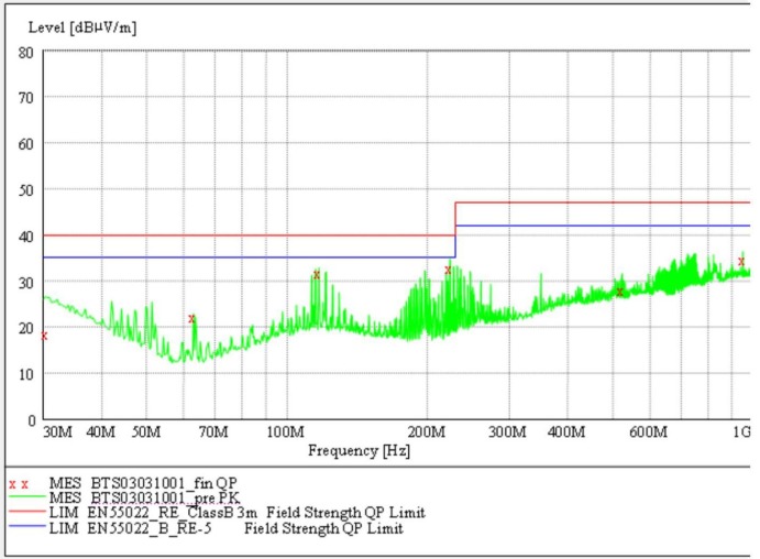 電源適配器EMC 測試輻射發射不能通過規格定義的 EN55022 Class B 限制, 在定位測試中發現測試結果不是很穩定。在 70MHz 到 400MHz 之間大面積頻點超標。某些時候測試結果變得比較差,某些時候測試結果比較好。 該產品屬于模塊級屏蔽,四個模塊單獨屏蔽,模塊外出線纜通過盲插頭連接到背板,并且通過盲插頭周圍的導電膠條和背板對應部分 360 度良好接觸,將背板和模塊整個連接成為一個良好的屏蔽體。 后經過反復定位發現問題主要是由于模塊的安裝導致的在盲插頭導電橡膠和模塊配合不好導致。通過對策測試,解決了該問題。