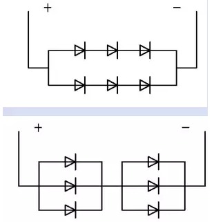 混聯方式還有另一種接法,即是將LED平均分配后,分組并聯,再將每組串聯一起。
