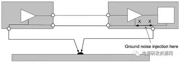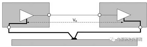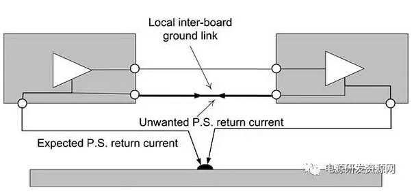 | 一、板間接口信號 有一類信號我們還沒有討論到,那就是在某個裝置中從一塊電路板傳送到另一塊電路板的那些信號。一般這些信號是已經處理過的數字控制信號或模擬信號,因此電平不會很低,不容易受地噪聲的影響,電流也不會太高而產生顯著的噪聲。為了全面地考察地回路,這些信號不應該被遺漏:問題是,對它們要做些什么? 答案通常是什么也不做。如果板間信號明確不包含地回路,那么信號返回電流必須沿電源適配器連線流動,因此接口將承受這些線上存在的所有地注入噪聲Vn(圖1.12)。 ![]() 圖1.12 板間的地噪聲 不過如果你的接地方案是經過深思熟慮的,那么這些噪聲可能還不足以影響接口的工作。例如,100mV的噪聲串行注入到噪聲余量為1V的CMOS邏輯接口是沒有直接影響的。或者,交流噪聲注入到接口輸入端采用了很好濾波的直流模擬信號也是可以忍受的。 二、分割信號回路 偶然會有長距離地回路的情況,這對接口是不太好的。典型情況有: · 當傳送的是高速數字信號,而地回路又具有太大電感時,將導致信號過渡處發生振鈴; · 當連接的是不能忍受注入噪聲的精密模擬信號或低電壓直流差分信號時。 如果你試圖為感興趣的信號提供局部板間地線來解決這些問題的話,你可以需要冒為電源適配器返回電流提供另一條路徑的風險,從而達不到局部地線的目的。只有一部分電源適配器返回電流將在本地鏈路中流動(圖1.13),具體比例取決于相關阻抗,你可能會退回到起點。 ![]() 圖1.13 經過板間鏈路的電源適配器返回電流 如果你真的需要局部信號回路,但地返回電流用起來又有麻煩,那么你可以采用下面兩種方法: · 將接口輸入側的地回路(圖1.14)和PCB上的其它地分割開來。這樣做可以具有將板內的地噪聲注入點移到輸入緩沖器之后的效果,從而達到你的目的。這種方案在實施時需要在空隙X-X中放置一個幾歐姆的“阻塞”電阻。這樣可以阻止直流地的電流流動,因為它的阻抗相對高于正確地路徑的阻抗,但它在高頻時能有效地將輸入緩沖器連接到其父地,如果板間鏈路斷開時能夠防止它懸浮。 · 在接口處使用差分連接。這時的信號電流是平衡的,不需要地回路。任何地噪聲都以共模方式注入,并被輸入緩沖器所抵消。當高速或低電平信號必須相隔一定距離通信時,這種技術很常見,對于板間電平信號來說這種技術也是適用的。當然,這種技術比典型的單端接口要昂貴,因為它需要專門的緩沖驅動器和接收器。