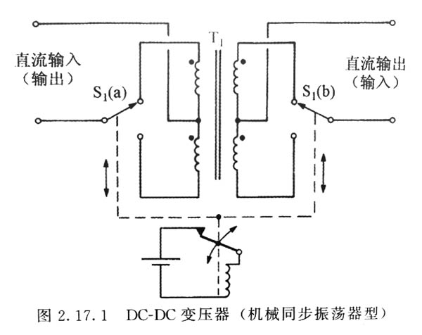 圖中,開關(guān)S1(a)和S1(b)同軸且彼此同步。該同步振蕩器電路(除機(jī)械限制外)是一個(gè)幾乎理想的DC-DC變壓器。開關(guān)是通過感應(yīng)進(jìn)行的,因此是完全雙向作用的。該變壓器可將直流從輸入傳遞到輸出或反之。這完全是由于機(jī)械開關(guān)的雙向性質(zhì)。該電路為現(xiàn)代DC-DC變壓器概念提供了一個(gè)很好的模型。 攝像機(jī)電源適配器在現(xiàn)代半導(dǎo)體替代電路中,因?yàn)橛蔁o方向的半導(dǎo)體代替了機(jī)械開關(guān),所以不存在雙向作用。在方波DC-DC變換器中,原邊開關(guān)S1(a)的作用由2個(gè)無方向的晶體管或功率MOSFET來完成,而副邊同步開關(guān)S1(b)的作用由二極管整流器來完成。可是基本概念與同步振蕩器的相同(在飽和出現(xiàn)前,保證將變壓器的輸入和輸出反向,從而實(shí)現(xiàn)DC-DC變換)。