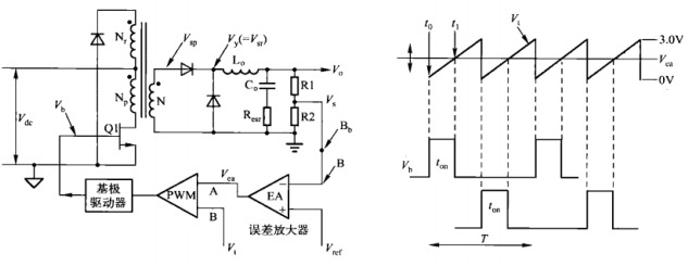 | 在設計充電器的過程中反饋環路為什么會振蕩?今天六級能效電源適配器廠家玖琪實業為伙伴們詳細分析! 圖所示為正激變換器的典型負反饋環路。一般脈寬調制芯片不僅有基本的誤差放大器和PwM調制器功能,同時也有其他一些功能。不過分析系統穩定性問題,暫且只考慮誤差放大器和脈寬調制功能。 ![]() 正激變換器的典型閉環反饋環路 由網壓輸入或負載的改變引起V的微小、緩慢變化,該變化通過由R1、R2組成的電阻分壓采樣網絡檢測,輸入到誤差放大器EA的反相端,與EA同相輸入端的參考電壓V進行比較。EA輸出端相對緩慢變化的電壓V隨之改變,并輸入到PwM調制器的A輸人端。PWM調制器將A端輸入的直流電壓V與B端輸人的幅值大約為0~3V的三角波V,進行比較后,在輸出端得到矩形脈沖(PWM脈沖)。PWM脈沖的寬度L為三角波開始時刻到直流電壓與B端三角波相交時刻t1的時間。此脈沖的寬度決定了PwM芯片輸出晶體管的導通時間,也就決定了功率晶體管的導通時間。例如,輸入電壓V的緩慢升高將導致V,的緩慢升高,由于輸出電壓 ,從而也引起V的緩慢升高。V的升高會引起采樣電壓V,升高,V隨之降低。因為L是從三角波開始時刻到V與三角波相交的時刻t1的一段時間,故V的降低將導致的減小,使V恢復到它的原始值。同理,V4的下降將導致的增加,以保持V不變,滿足輸出電壓穩定的要求。功率晶體管的驅動信號通常來自PWM芯片內輸出晶體管的射極或集電極,即信號已在芯片內部經過一級電流放大基極驅動電路。無論從集電極輸出還是發射極輸出,都必須保證極性正確,即當輸出V上升時,導通時間縮短。注意,大部分PwM芯片的輸出品體管在到1時間內都是導通的。使用這類PwM芯片時,V要接到EA的反相輸入端采用NPN型功率晶體管作為開關管時,其基極(N溝道 MOSFET管則稱為門極)應由PWM芯片輸出晶管的發射極來驅動。 圖所示電路是考慮低頻信號作用時的負反饋穩壓系統。然而環路中可能存在低電平的噪聲電壓或暫態電壓,它們的正弦傅里葉分量的頻譜很寬。這些傅里葉分量經過輸出濾波器的L、C、誤差放大器,以及PWM調制器(V到V)后的增益變化和相移都是不一樣的若某一傅里葉分量的環路增益是1,額外的相移為180°(第一個180°來源于負反饋連接),總的相移為360°,則反饋后的信號將會與輸入同相,即會變成正反饋,而不是所期望的負反饋從而引起下面所說的振蕩。 系統振蕩原理 以圖中的正激變換器反饋環路為例,假設在某一時刻,環路在誤差放大器的反相端B點斷開。在環路斷開前,所有的傅里葉分量從B點到V=,從V到平均電壓V,再從平均電壓V通過L、C濾波器返回到B(即環路的斷開處)的過程中,都有增益變化和相移。 假設此時有一頻率為f的干擾信號進入B點,經過上述的路徑后返回到B,得到的響應信號(eho)的相位和增益與原B點信號相比都發生了變化。倘若響應信號正好與原信號同相位且幅值相等,而此時環路恢復正常的閉合狀態(Bb與B相連),并且外部注入的干擾信號消失,電路中仍將存在頻率為f的持續振蕩。引起并維持振蕩的干擾信號就是噪聲譜中頻率為f的傅里葉分量。 電路穩定的增益準則 穩定環路的第一個準則是:在開環總增益為1的穿越頻率處,系統的總開環相移必須小于。這里包括了負反饋帶來的180°相移。在穿越頻率處,總相移小于360°的角度稱為相位裕量。 為了保證系統在各元件的參數發生變化的較惡劣情況下仍然保持環路穩定,通常的設計準則是使系統至少有35°~45°的相位裕量。 電動玩具電源適配器電路穩定的增益斜率準則 本節將介紹一些常用的與增益斜率相關的穩定準則。增益V/V隨頻率的變化曲線通常用半對數坐標(dB)表示,如圖所示。增益變化20dB(即代數變化10倍)時,頻率變化10倍,則該增益的變化率為20dB/dec,斜率為±1。因此,增益變化率為±20dB/de的電路也稱為1增益斜率電路。 圖為BC積分電路,在極點f=1(2B1C)后的增益斜率dV/dV。為-20dB/dec,即頻率變化10倍時,增益變化20dB。-20dB/de即是-1增益斜率,這種電路也稱為-1斜率電路。 圖為RC微分電路,在零點f=1(2mR2C2)前的增益斜率為+20dB/de,零點處有X。=R2。零點后增益漸近通近0dB。頻率每變化10倍頻,增益變化20dB,+20dB/dh為+1的增益斜率,這種電路也稱為+1斜率電路。 圖為LC/R濾波電路,在臨界阻尼(R=√C)情況下,增益dF/dF在轉折頓率=1/(2m√DC。)前為1(即0dB)。轉折頻率后,增益的斜率變成-40B/d,這是因為頻率每增加10倍,x變大10倍,而x減小10倍。頻率變化10倍時,增益變化40B40dB/dec的增益斜率為-2,這種電路也稱為-2斜率電路。 圖所示的RC積分電路就是典型的增益斜率為-1(穿越頻率后)的電路。圖中的RC微分電路在穿越頻率前的增益斜率是+1,或者說增益變化率為20dB/dec。,因為當頻率每增加或減少10倍時,容抗也增加或減少10倍,但電阻的阻抗保持不變,所以這類電路只有20 dB/dec的增益變化率。 不考慮輸出電容中的等效串聯電阻(ESR)時,輸出LC濾波電路(圖)具有-2(或者說-40dB/dec)的增益斜率。這是因為,當頻率增大10倍時,電感的感抗增大10倍,與此同時,電容的容抗減小10倍。 ![]() 圖所示的是歐規電源適配器對應于不同輸出阻抗R。值時,LC。濾波器的幅頻特性曲線和相頻特性曲線。圖中的曲線是對應于不同比率k1=fF、(F=1(2m√C))和k2=R/√LC的歸一化曲線。 圖表明,無論k2取何值,所有的增益曲線在頻率高于轉折頻率F=1(2mLC。)時,斜率漸近于-2(-40dB/de)。k2=1。0的電路,稱