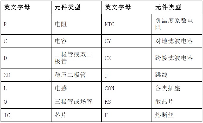 絲印包括“英文字母+數字”兩部分:英文字母代表元件的類型,數字代表其在整個電路中的順序號。