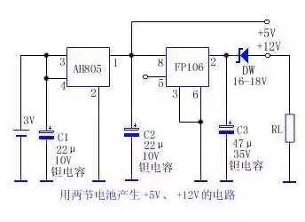 | 1、3V轉+5V、+12V的電路圖 由電池供電的便攜式電子產品一般都采用低電源電壓,這樣可減少電池數量,達到減小產品尺寸及重量的目的,故一般常用3~5V作為工作電壓,為保證電路工作的穩定性及精度,要求采用穩壓電源供電。若電路采用5V工作電壓,但另需一個較高的工作電壓,這往往使設計者為難。本文介紹一種采用兩塊升壓模塊組成的電路可解決這一難題,并且只要兩節電池供電。 該電路的特點是外圍元件少、尺寸小、重量輕、輸出+5V、+12V都是穩定的,滿足便攜式電子產品的要求。+5V電源可輸出60mA,+12V電源較大輸出電流為5mA。 ![]() 該電路如上圖所示。它由AH805升壓模塊及FP106升壓模塊組成。AH805是一種輸入1.2~3V,輸出5V的升壓模塊,在3V供電時可輸出 100mA電流。FP106是貼片式升壓模塊,輸入4~6V,輸出固定電壓為29±1V,輸出電流可達40mA,AH805及FP106都是一個電平控制的關閉電源控制端。 兩節1.5V堿性電池輸出的3V電壓輸入AH805,AH805輸出+5V電壓,其一路作5V輸出,另一路輸入FP106使其產生28~30V電壓,經穩壓管穩壓后輸出+12V電壓。 從圖中可以看出,只要改變穩壓管的穩壓值,即可獲得不同的輸出電壓,使用十分靈活。FP106的第⑤腳為控制電源關閉端,在關閉電源時,耗電幾乎為零,當第⑤腳加高電平》2.5V時,電源導通;當第⑤腳加低電平<0.4V時,電源被關閉。可以用電路來控制或手動控制,若不需控制時,第⑤腳與第 ⑧腳連接。 2、用MC34063做3.6V電轉9V電路圖 工作狀態: 無負載: 輸入:3.65V、18uA(相當600mAH的電池待機三年多) 有負載: 輸出:9.88V、50.2mA,輸入:3.65V、186.7mA,效率為72% 工作原理: 無負載時,IC的 6腳沒有電,停止工作,輸入端3.65V工作電流只有18uA(相當600mAH的電池待機三年多)! 當有負載時(Q1有Ieb電流),8550的EC極導通,IC得電工作。 IC是否工作是由是否有負載決定的,就相當一個電池。 用IC做電壓轉換效率高,輸出穩定! 這個電路加點改進,增加功率可以做“不需開關的4.2V轉5V移動電源”。可以用個電池盒做手機的后備電源! 電路圖 ![]() 文章轉載自網絡,如有侵權,請聯系刪除。 |