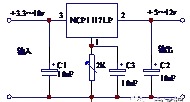 芯片的引腳排列見圖1,芯片的標記是7LPXX,它的意思是XX代表15、18、25、33、50、AD.代表每一種芯片上的標記是它的輸出電壓1.5V、1.8V、2.5V、3.3V、5.0V、Adj(可調電壓)。