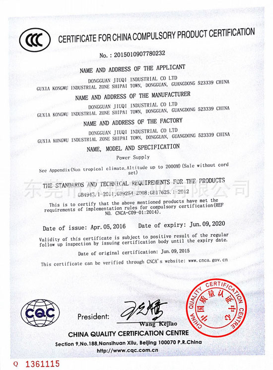 產(chǎn)品認(rèn)證 » 13.5W證書 » CCC安規(guī)證書-13.5W系列電源適配器