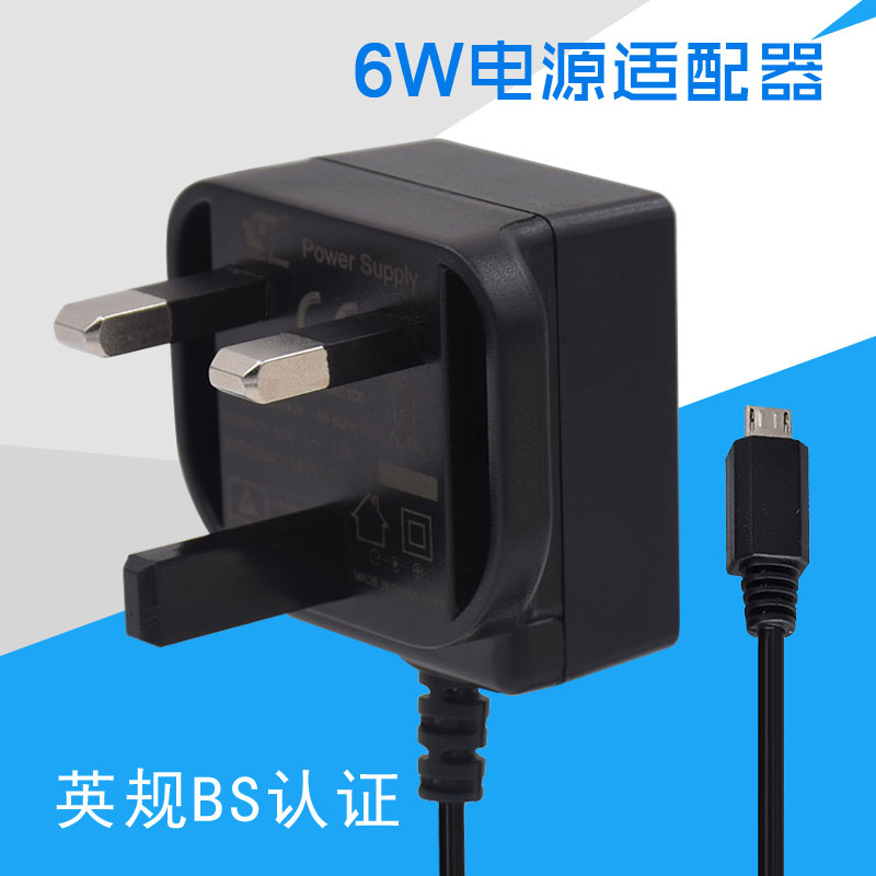 電源適配器生產廠家供應5V1.2A電源適配器 6W英國三插充電頭具有高效率的電路設計,性能穩(wěn)定,低溫升的特點